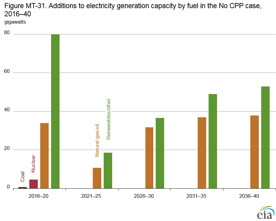 - With no Clean Power Plan (CPP), coal-fired generation shows little change from 2015 level