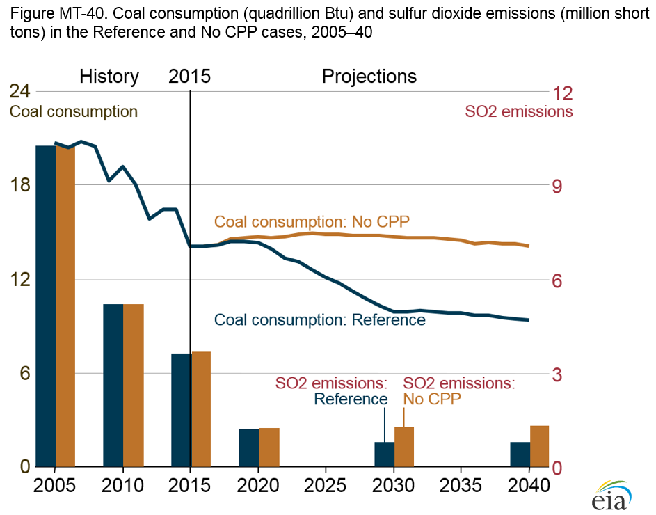 - With Clean Power Plan, power plant coal use and sulfur dioxide emissions decline in the Reference case