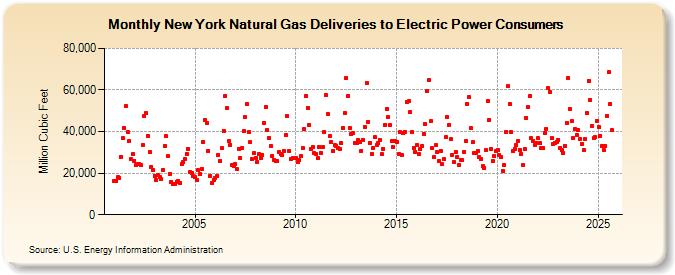 | New York Natural Gas Deliveries to Electric Power Consumers (Million Cubic Feet) | ||||||||