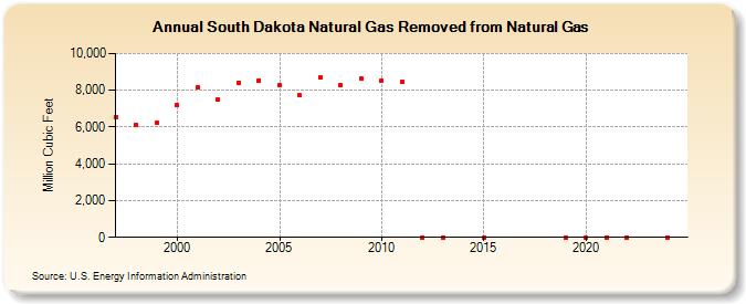 | South Dakota Natural Gas Removed from Natural Gas (Million Cubic Feet) | ||||||||