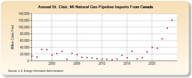 St. Clair, MI Natural Gas Pipeline Imports From Canada (Million Cubic Feet)