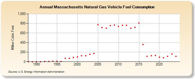 Massachusetts Natural Gas Vehicle Fuel Consumption (Million Cubic Feet)