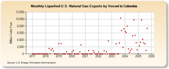 | Liquefied U.S. Natural Gas Exports by Vessel to Colombia (Million Cubic Feet) | ||||||||