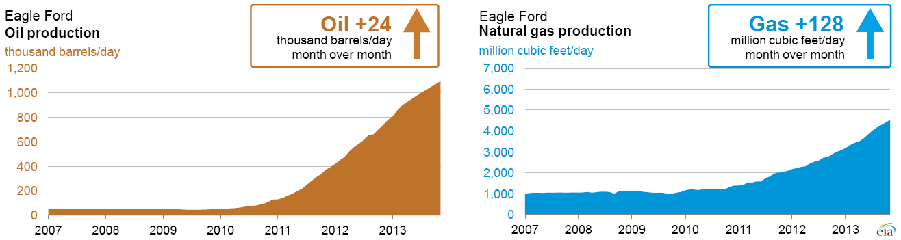 The productivity gains and the current rig count in the Eagle Ford and Permian regions comfortably offset the current decline rates. The recent emergence of production growth in the Niobrara and Permian, along with strong continued growth in the Eagle Ford, is evidence that tight oil production will continue to drive production growth in the United States.