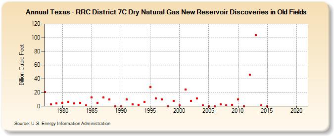 | Texas - RRC District 7C Dry Natural Gas New Reservoir Discoveries in Old Fields (Billion Cubic Feet) | |||||