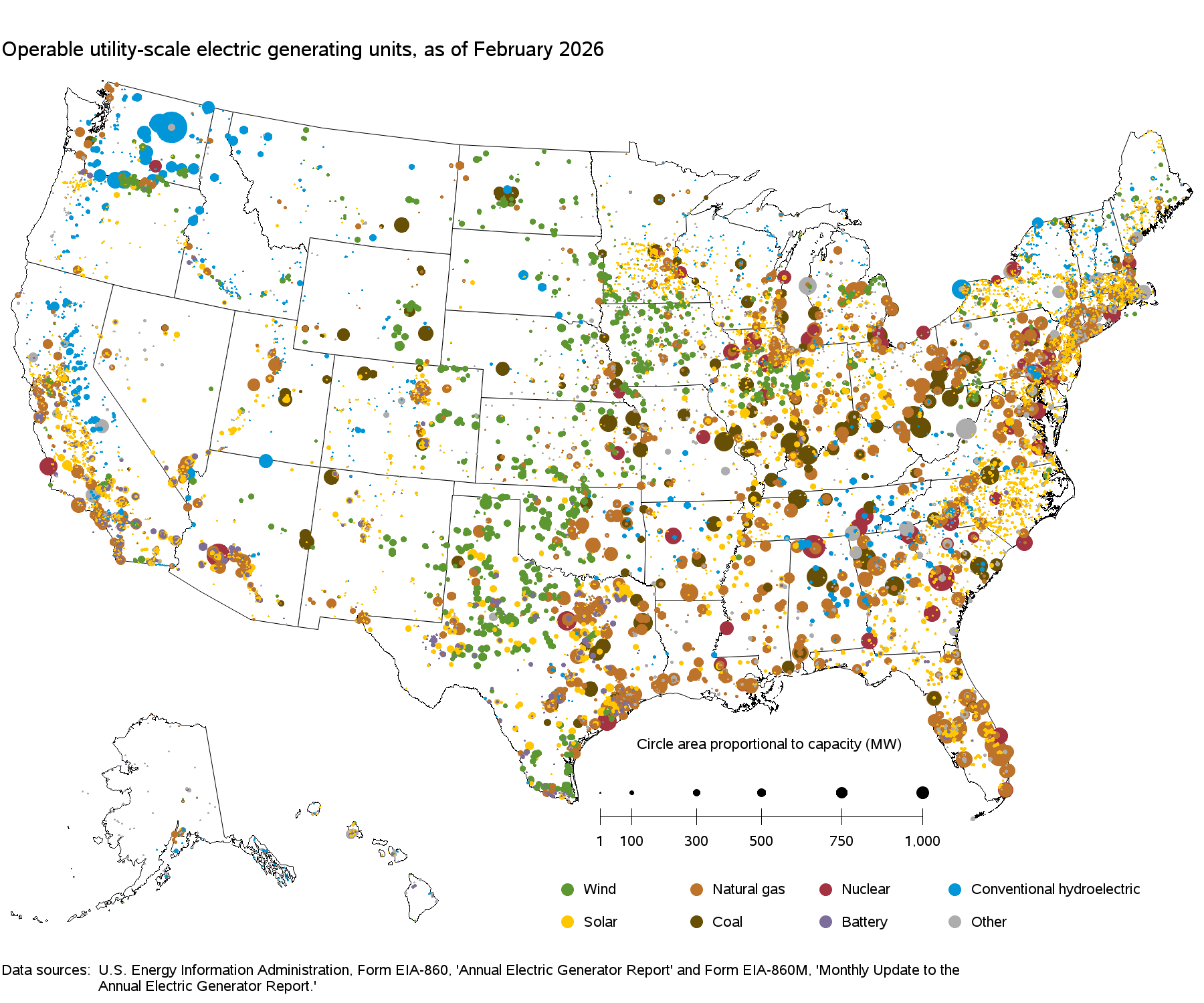 Starting with March 2018 data, the Preliminary Monthly Electric Generator Inventory also includes data from Puerto Rico for existing, retired, and proposed generating units at electric power plants with combined nameplate capacity of 1 megawatt or greater.